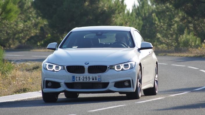 J’ai pu tester assez longuement un coupé 435i xDrive de 2013. Une bien jolie auto ! A l’intérieur, on retrouve la planche de bord de la Série 3 F30, une belle pièce, à la fois stylée et bien réalisée. Les sièges sont parfaits (si on a opté pour le réglage lombaire électrique, attention) et la position de conduite tout autant. Le 6-en-ligne se réveille dans un joli son, et d’emblée, la douceur mécanique surprend en bien. La boîte change de rapport presque insensiblement, et en conduite tranquille, on se sent relaxé. La suspension filtre correctement les inégalités, le niveau sonore reste très bas...